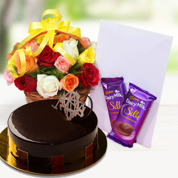 • Chocolate Truffle Cake and Yellow Roses Basket – The Ultimate Gift from Puneflower